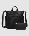 Designed for busy days and refined routines, the Bronx Backpack & Everyday Pouch Bag Set in Black delivers effortless organisation in one elevated pairing. Crafted from smooth vegan leather, this everyday backpack bundle balances structured functionality with understated style. Spacious enough to hold up to a 16-inch laptop, the Bronx transitions seamlessly from office hours to weekend plans. Convertible wear options and thoughtful compartmentalisation ensure everything has its place. Inside, the Everyday Pouch keeps your smaller essentials organised and within reach, from tech accessories to makeup and valuables. Together, this coordinated bag set keeps you prepared and polished for wherever your schedule takes you.