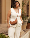 The Claudia Tan Shoulder Bag is a refined take on an everyday essential, blending on-trend design with timeless elegance. Designed to sit comfortably under the arm, this shoulder bag for women features a crescent silhouette that brings a playful edge to polished styling. Crafted from smooth tan vegan leather with contrast white stitching, Claudia Tan adds a sophisticated touch to any look. A shorter shoulder strap and light gold hardware elevate your outfit for evenings out, while the adjustable, detachable crossbody strap offers hands-free versatility -making her the perfect casual everyday bag. Finished with a secure zip closure to keep your essentials safe and within easy reach, this versatile crescent bag is thoughtfully designed to transition effortlessly from morning errands to sunset spritzes — all while carrying your daily must-haves in style.