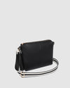 The Daisy Black Stripe Crossbody Bag is a best-selling favourite, loved for her buttery soft, slouchy silhouette and effortless versatility. Designed with both style and function in mind, she features two slip pockets, one internal zip pocket, and a back zip pocket to keep essentials secure and organised. Finished with light gold hardware and a playful tassel, Daisy includes two strap options - a sporty, adjustable webbing strap for a relaxed edge, or a matching vegan leather strap for a polished finish. Whether worn casually or styled with sophistication, Daisy adapts effortlessly to your mood and your moment.