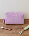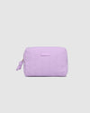 The Destiny Lilac Cosmetic Case is a compact beauty accessory perfect for overnight stays and weekend getaways. Crafted from soft scalloped material, this large cosmetic bag stores all your travel essentials with its secure zip closure. Perfect for your weekender bag, this cosmetic case will keep your skincare essentials secure on your next adventure. *Beauty products not included.