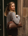 Blending modern function with Parisian ease, the Eleanor Chocolate Shoulder Bag brings a timeless charm to everyday dressing. Crafted as a softly structured bowler bag, she pairs smooth vegan leather with contrasting faux suede panels, creating a refined finish that adds gentle richness to every moment. Designed as a versatile women’s top handle bag, Eleanor Chocolate features fixed double handles for an elevated carry and a detachable crossbody strap for hands-free ease. Inside, thoughtfully placed zip and slip pockets keep essentials neatly organised, while a secure top zip closure ensures confidence on the go. Poised yet practical, she’s the perfect companion for workdays, weekends, and everything in between.