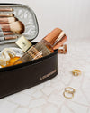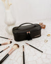 The Louenhide Fifi Black Cosmetic Case is the perfect travel companion offering an elegant yet functional solution to carry all your favorite toiletries. Its structured flat base makes it easy for makeup storage and organisation. The practical top handle allows for easy access to your products and offers effortless transportability in or out of your suitcase or travel bag. *Makeup brushes included, other beauty products not included.