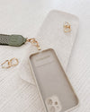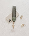 The Louenhide Iris Sage Green Keyring is a two-tone webbing wrist strap featuring our new season pastel geometric motif. Crafted from soft webbing, with a LH embossed vegan leather tab and light gold hardware, this women's keyring isn't just for your keys; simply attach it to your favourite Louenhide wallet or pouch to suit your unique style and needs. Say goodbye to digging through your bag, the Iris Sage Green Keyring will always be within easy reach.