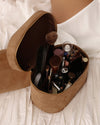 The Eloise Mummé x Louenhide Juliette Vanity Case celebrates the moments before you leave the house. Crafted from warm honey faux suede with a rich chocolate interior, she’s designed for the getting ready ritual, not the rush. Inside, Juliette features a removable, wipeable insert with dividers to keep beauty essentials neatly organised and easy to clean in the event of makeup or skincare spills. Finished with a structured silhouette and practical top handle, she’s the perfect companion for beauty lovers who appreciate thoughtful organisation and taking their time while getting ready.