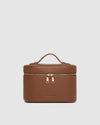 The Juliette Tan Vanity Case is the ultimate travel beauty case with a handle - designed to keep your cosmetics, skincare, and accessories beautifully organised, wherever the season takes you. Crafted from buttery soft vegan leather in a sleek, structured silhouette, she opens to reveal a removable insert with divider and three slip pockets, giving every item a dedicated place. Whether you're packing for a weekend away or curating your daily essentials, this versatile cosmetic case blends everyday functionality with elevated style. Finished with refined details and a practical top handle for effortless carrying, Juliette Tan is the perfect plus-one for beauty lovers on the move.