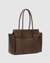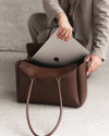 The Leighton Chocolate Tote Bag embodies refined functionality. Designed as a professional tote bag, she balances sharp structure with timeless simplicity to create an effortlessly sophisticated silhouette. Crafted from smooth vegan leather, Leighton Chocolate’s clean lines and considered proportions make her a staple that transitions seamlessly from office hours to after hours. Spacious and thoughtfully designed, her interior offers ample room for your laptop, notebook, and daily essentials, while the blind magnet flap closure keeps everything secure yet easily accessible. Finished with two structured top handles and a detachable long strap, this vegan leather work bag adapts to your day, a modern classic, designed for moments that demand both style and intention. She pairs perfectly with our Liv Laptop Sleeve for a coordinated workday look.