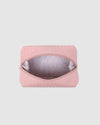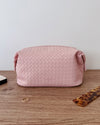 The Lucinda Woven Pink Cosmetic Case is a travel cosmetic bag designed to bring a touch of summer style to your everyday routine. Crafted from woven vegan leather and finished in colours that speak to the season, Lucinda Woven Pink is your go-to woven beauty case for summer travels and weekend escapes. Her structured silhouette opens to reveal a thoughtfully designed interior with a slip pocket to keep everything neatly organised. Side press studs allow you to adjust the shape for a more compact fit, while a secure zip ensures your must-haves stay safely tucked away. Whether you're packing light for a getaway or streamlining your daily routine, Lucinda Woven Pink delivers the perfect blend of function and sunshine-ready style.