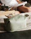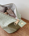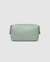 The Lucinda Woven Sage Green Cosmetic Case is a travel cosmetic bag designed to bring a touch of summer style to your everyday routine. Crafted from woven vegan leather and finished in colours that speak to the season, Lucinda Woven Sage Green is your go-to woven beauty case for summer travels and weekend escapes. Her structured silhouette opens to reveal a thoughtfully designed interior with a slip pocket to keep everything neatly organised. Side press studs allow you to adjust the shape for a more compact fit, while a secure zip ensures your must-haves stay safely tucked away. Whether you're packing light for a getaway or streamlining your daily routine, Lucinda Woven Sage Green delivers the perfect blend of function and sunshine-ready style.