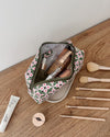The Mary Brianna Olive Cosmetic Set is a thoughtfully curated duo designed to bring ease, colour, and personality to your beauty routine. Perfect for travel or everyday organisation, this pairing blends structured functionality with playful detail for effortless packing wherever you go. The Mary Cosmetic Bag offers a travel ready solution for skincare, makeup, and daily essentials. Her structured silhouette opens wide and lies flat, providing clear visibility and easy access to everything inside. Paired with the Brianna Makeup Bag, a compact pouch finished in a playful retro print, the set adds a touch of fun to your packing lineup. Complete with a matching set of makeup brushes, Brianna is ideal for quick touch ups, overnight stays, or slipping into your carry on. Mary and Brianna are the cosmetic duo that balances organisation, colour, and charm, making every getaway feel a little more considered.