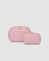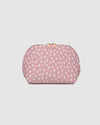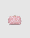 The Nancy and Baby Nancy Pink Raindrop Cosmetic Set brings together functional design and subtle personality. Finished in the signature raindrop print with a smooth vegan leather feel, this matching set offers practical storage for both everyday use and travel. The Nancy Cosmetic Bag features a zip around opening that provides clear access to makeup and skincare, with internal slip pockets to keep your favourites neatly arranged. Alongside her, the Baby Nancy Cosmetic Bag keeps smaller essentials close. Compact, easy to carry, and neatly organised with a slip pocket, she is perfect for touch ups throughout the day or for packing light on the go. A playful yet practical pairing that makes staying organised feel effortless.