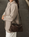 Chic and understated, the Nicole Chocolate Handbag brings a warm softness to everyday dressing. Crafted from smooth vegan leather and accented with light gold hardware, her clean lines and curved silhouette evoke an effortless Parisian charm. Designed as a women’s top handle bag with a refined flap bag silhouette, Nicole Chocolate adapts to your day with adjustable, detachable shoulder and crossbody straps. Inside, a zip and slip pocket keep essentials neatly organised, while the classic turn-lock closure adds a polished finishing touch. Understated yet enduring, she’s made for the modern woman who finds elegance in simplicity, transitioning with ease from workday moments to weekend wandering.