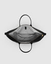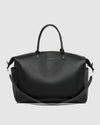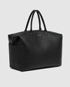 The Ohio Black Overnight Bag is a sleek unisex overnight bag designed for weekends away, business trips, or short getaways. Made from smooth vegan leather, her compact rectangular silhouette is perfectly sized to fit in overhead compartments while offering a spacious interior for all your travel necessities. A secure zip closure keeps belongings safe, while two external slip pockets provide quick access to items on the go. Thoughtfully detailed with light gold hardware, Ohio also includes a clear cosmetic pouch to store toiletries and prevent spills. Designed with versatility in mind, she can be carried three ways - by the long top handles, over the shoulder with the detachable crossbody strap, or hands-free with the hidden trolley sleeve slipped over your suitcase handle. Equal parts functional and refined, Ohio makes every journey effortless.