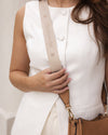 The Parker Camel Phone Crossbody Bag is a sleek everyday essential designed to keep your must-haves close in style. With her clean, portrait silhouette and contrast stitching, Parker offers a modern edge to a timeless design. Perfect for days when you’re travelling light, her compact interior fits your phone and small essentials, while the back slip pocket allows easy access on the go. Style her your way with the adjustable webbing guitar strap for a contemporary look or opt for the matching smooth vegan leather strap for a more streamlined finish. Versatile and effortless, Parker moves seamlessly from weekday errands to weekend catch-ups.