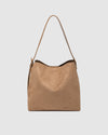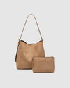 The Peyton Honey Shoulder Bag and Everyday Pouch Set embodies modern refinement with a distinctly Parisian ease. Crafted from soft faux suede in a warm honey tone, this pairing balances clean lines, thoughtful structure, and effortless organisation for everyday moments. The Peyton Shoulder Bag features a sleek, tailored silhouette accented with a statement buckle detail. Designed with a secure centre zip compartment, generous space for a 16-inch laptop, and an adjustable shoulder strap, she is a dependable choice for workdays and weekends alike. The Everyday Pouch complements the set with compact storage for smaller essentials. Whether used for valuables, tech accessories, or makeup, it offers a simple solution that keeps everything neatly in place. A considered pairing for days that call for structure, elegance, and effortless style.