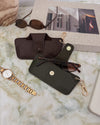 The Skittle Olive Sunglass Case is the perfect blend of style and functionality for your everyday eyewear. For ultimate convenience, effortlessly attach to your keys or handbag with the light gold hardware keyring clasp. Without compromising on style, the exterior features a gorgeous vegan leather, while the interior is lined with soft suede material to keep your everyday eyewear protected. Whether it's your favourite sunglasses or your reading glasses, they will stay protected and safe with the secure metal clasp. Designed in many gorgeous shades to suit everyone's style, the Skittle makes the perfect gift for any occasion.