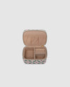 The Suzie Retro Olive Jewellery Box is a sweet travel companion ready to store all of your rings, necklaces, bracelets, and earrings. Use every day and stow in your bag for on-the-go use, or pack for weekend adventures. Featuring three ring rolls, two compartments, and an elasticated slip pocket, your precious gems will be secured safely.